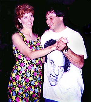 Before the last dance of the evening, my bride and I slipped into more casual outfits. I was planning to wear something Caribbean style, but my Caribbean shirt somehow got misplaced. Luckily, I found just the right shirt: I came back into the reception hall wearing a T-shirt graced by a larger-than-life portrait of Larry, and a pair of white shorts. The crowd cheered and laughed as we headed toward the dance floor. Some of my friends started to sing a Stooge melody: "Oh, wedding bells will start to ring ding dong ding..." as the evening came to a close. It was truly a fun-filled night with lots of laughter, humor and high spirits, complements of the Three Stooges.