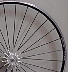 30. Velomax Javelin 18 spoke front. 1999. Built radially using 2.0-1.7 mm swaged spokes and alloy nipples on a narrow Velomax R1 sealed bearing hub. Thanks to Jane Rinard. | 735g | 18.7w x 29.9d mm | 2.45mm |