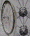 83. Mavic (model?) 36 spoke front. Built 3 cross using DT 1.8 mm spokes on an OMAS track hub. 1085 including Avocet FasGrip Road "290" tubular. Thanks to Jon Isaacs. | approx. 795g | not measured | 1.73mm |