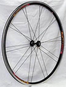 16. Mavic Cosmic 16 spoke tubular front built radially using 2.8 x 1.4 mm elliptical spokes and hidden brass nipples on a Mavic hub. Thanks to Darryl Mataya. | 917g | 18.3w x 37.7d mm | 1.70mm |