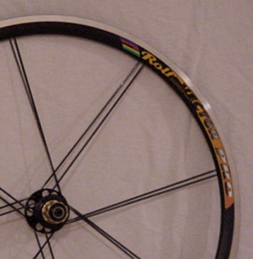 121. Rolf Vector Pro 14 spoke front. 1999. Built radially in pairs using DT 2.0 - 3.3x1.1 - 2.0mm aero spokes and hidden nipples on a DT Swiss 240 hub. Thanks to Hi-Tech Bikes. | 805g | 18.4w x 30.9d mm | 1.86mm |