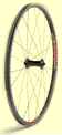 113. Lew 20 spoke rear. 2000. Right side: 2 cross DT 2.0-1.8 mm stainless steel spokes. Left side: radial (elbows in) DT 2.0-1.5 mm stainless steel spokes. Nipples hidden in rim. White Industries hub. Thanks to Hi-Tech Bikes. | 715g | 17.1w x 43.0d mm | 3.53mm from RH 3.45mm from LH |