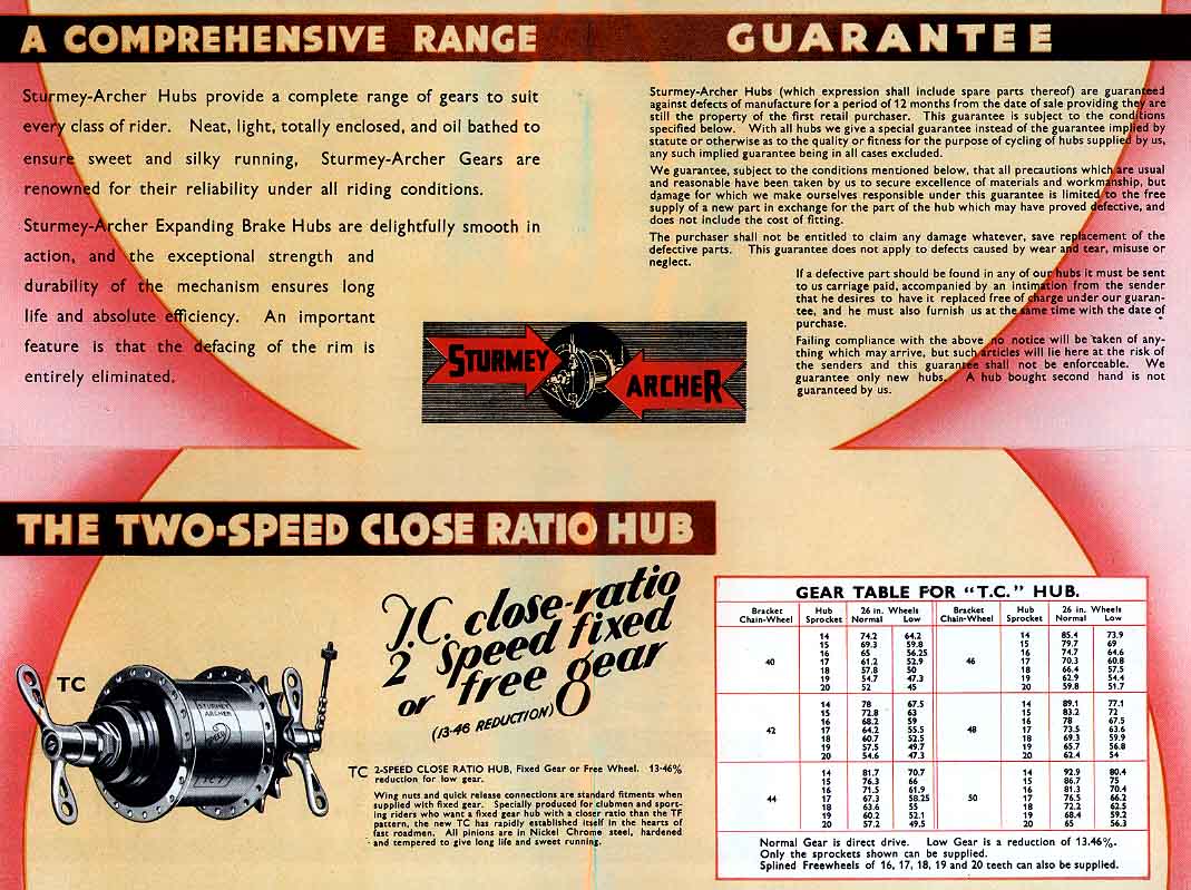 Here are some scanned sales brochures from the 1930s for Sturmey-Archer Hubs