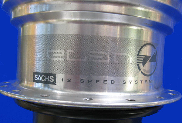 A view of the hub shell, showing the manufacturer's identification. The shell was of aluminum. How much this hub would have weighed with a steel shell is frightening to imagine.